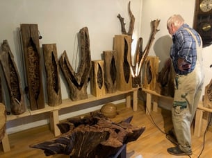 Aufgrund seines Wissens und Könnens als Schreiner kann er frei und gestalterisch mit dem Holz und seinen gewachsenen "Inhalten" umgehen. Dies macht er auf eine sehr sorgfältige Weise mit viel