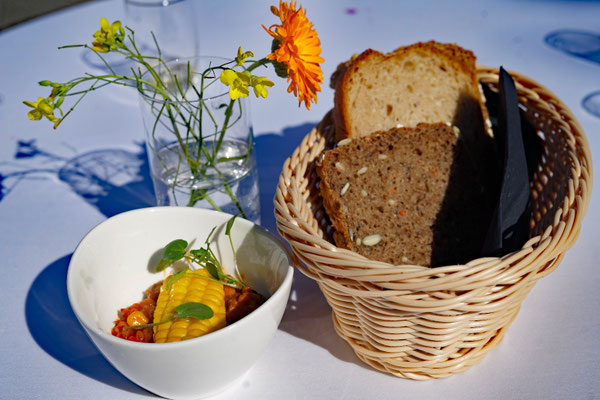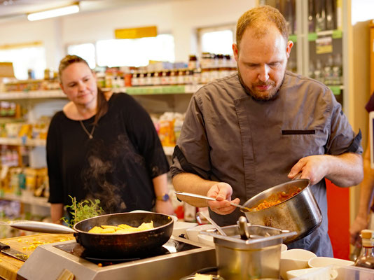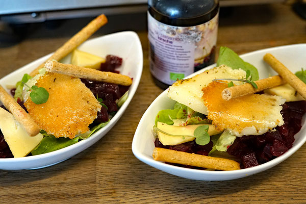 Mehrgängiges Menü bio-regionaler Spezialitäten, die es bei uns im Bio-Hofladen zu kaufen gibt.