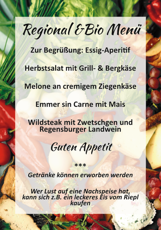 In Kooperation mit dem Landratsamt Regensburg/ Abteilung Ökomodellregion konnten wir dank Monika Ernst an der REGIOplus Challange teilnehmen. Es soll eine Anregung sein, sich eine Woche ausschließlich mit regionalen Lebensmitteln - aus max. 50 km Entfernung - zu ernähren (man hat aber 3 Joker, z.B. für Kaffee oder Gewürze). Zum Probieren gab es Rohschinken vom Waldschwein von Stäbler, Damwild-Salami von Weidetiere aus dem Regental, Streichwurst vom Biohof Arzberger, Birnen vom Bio-Hof Böhm, Äpfel und Weintrauben vom Bio-Obstbau Vilser, Tomaten und Karotten vom Biolandhof Heitzer, Freibier von DiVeRs GbR, Essig von Kriegl Essig und Apfel-Hollundersaft von Saftliebe. Als Unterlage und zum Essig Tunken hatten wir Baguette von der Biobäckerei Neuhoff und als Garnierung für die Streichwurstbrote Frühlingszwiebeln vom BioHof Deinhart. Es hat uns super gut geschmeckt und die Kunden waren durch die Bank begeistert.